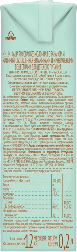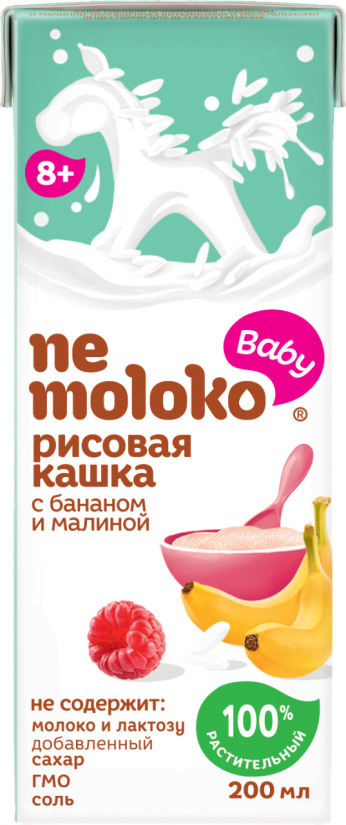 Nemoloko безмолочная рисовая кашка с бананом и малиной