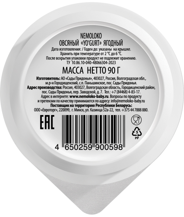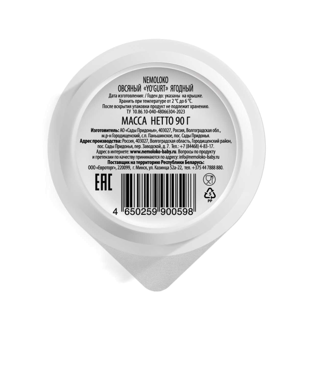 Все продукты кислонемолочной линейки Nemoloko baby имеют свидетельства государственной регистрации (СГР) как специализированные продукты для детского питания и рекомендованы для питания детей старше 12 месяцев.